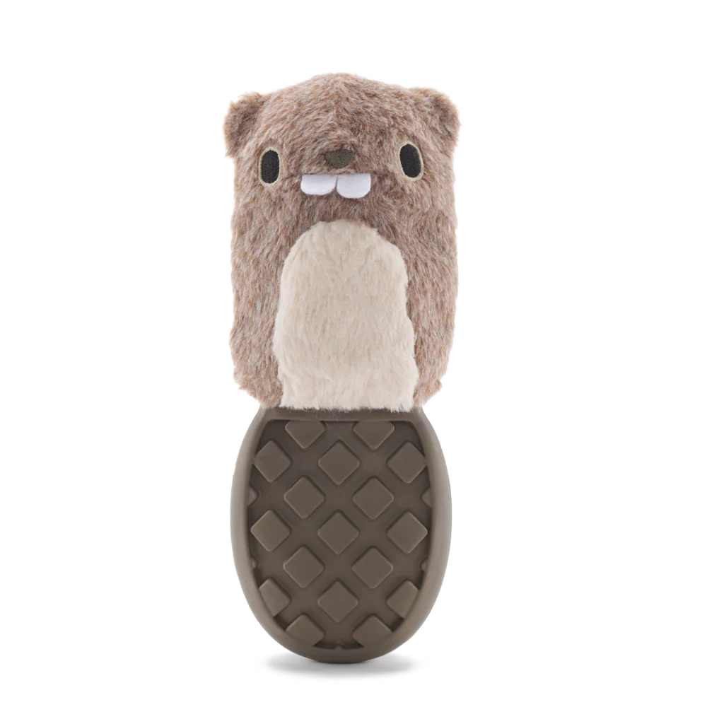 - Determined chewers will reveal a natural rubber core underneath P.B. Beaver's shreddable plush layer. Spread peanut butter on her textured tail for an exceptionally mouthwatering chew challenge!